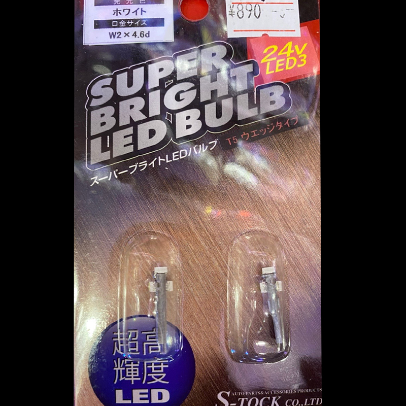 T5スーパーブライトLEDウェッジ球 (メーター球) 24V専用 ホワイト 2個入【ES-78】