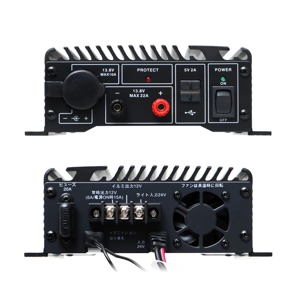 入力13.8Vの無線機や電子機器が使用できるようになります。
