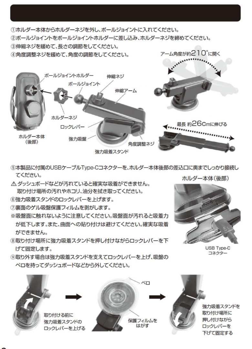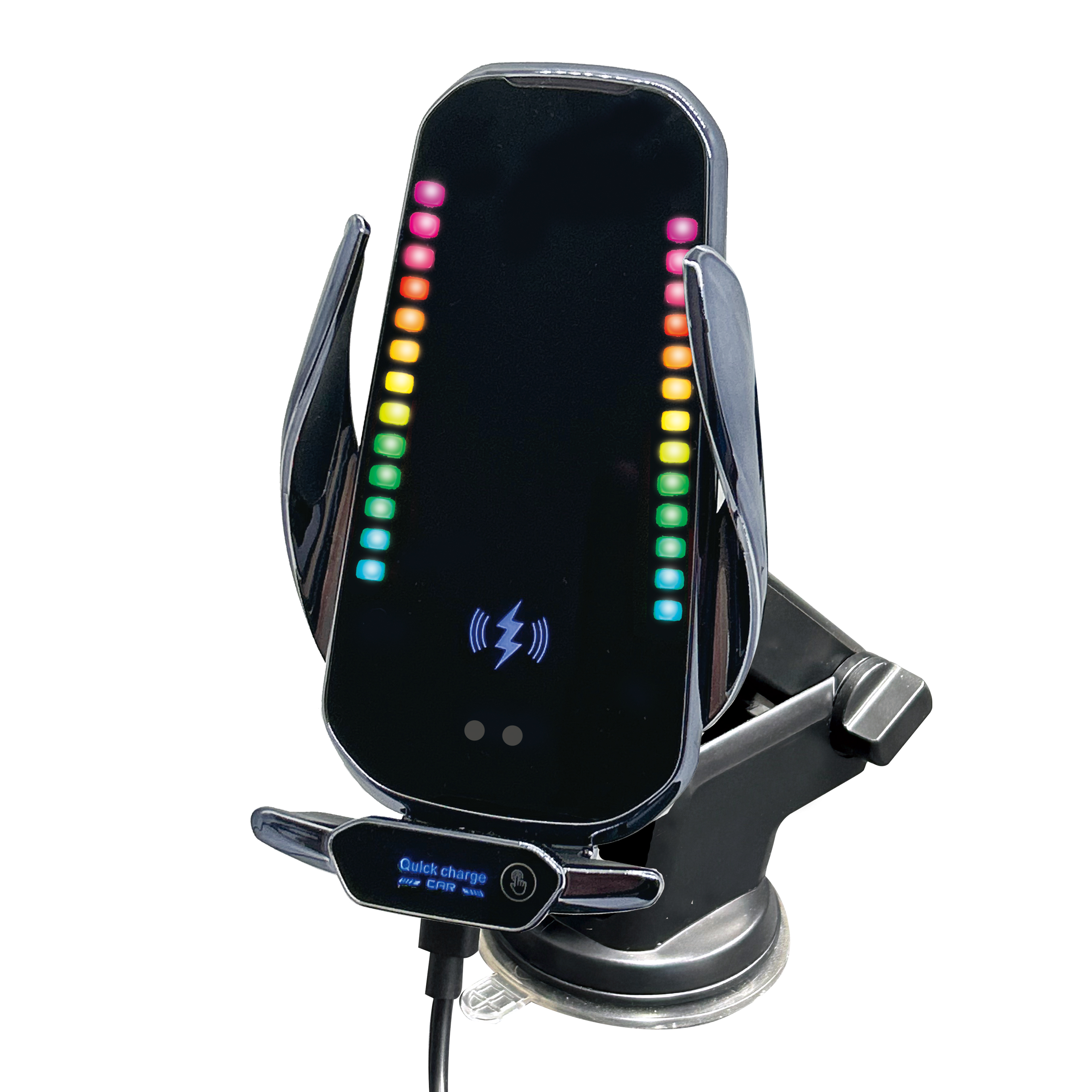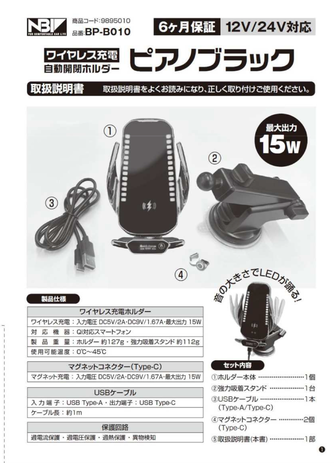 自動開閉スマホホルダー ワイヤレス充電 LED&ピアノブラック【BP-B010】
