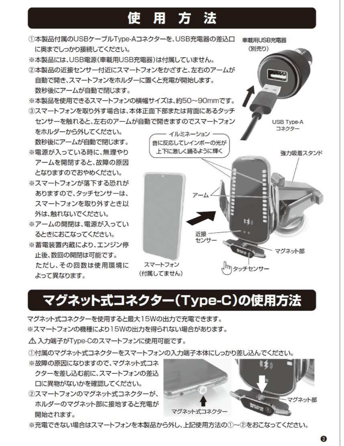 マグネット充電:入力電圧 DC5V/2A・DC9V/1.67A 最大出力 15W