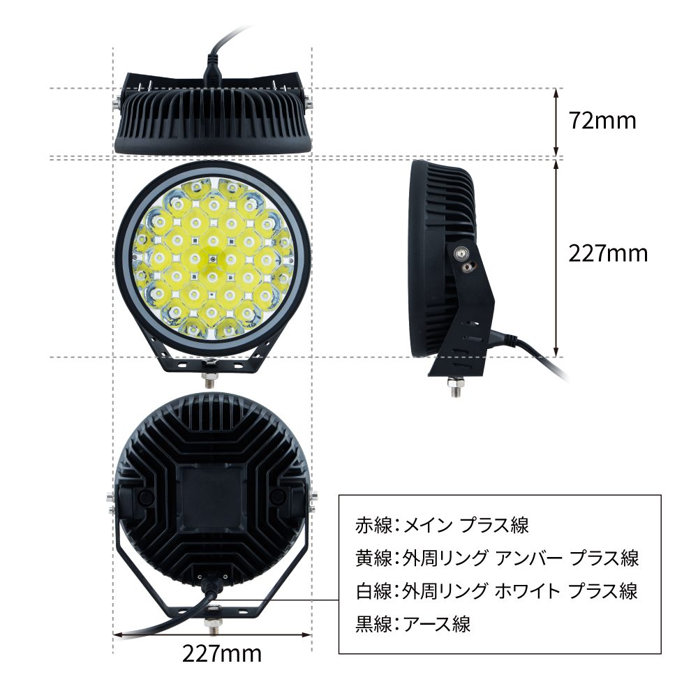 ※外周リングは黄線(LED:アンバー)と白線(LED:ホワイト)を同時接続した場合、ホワイト点灯が優先されます。※
