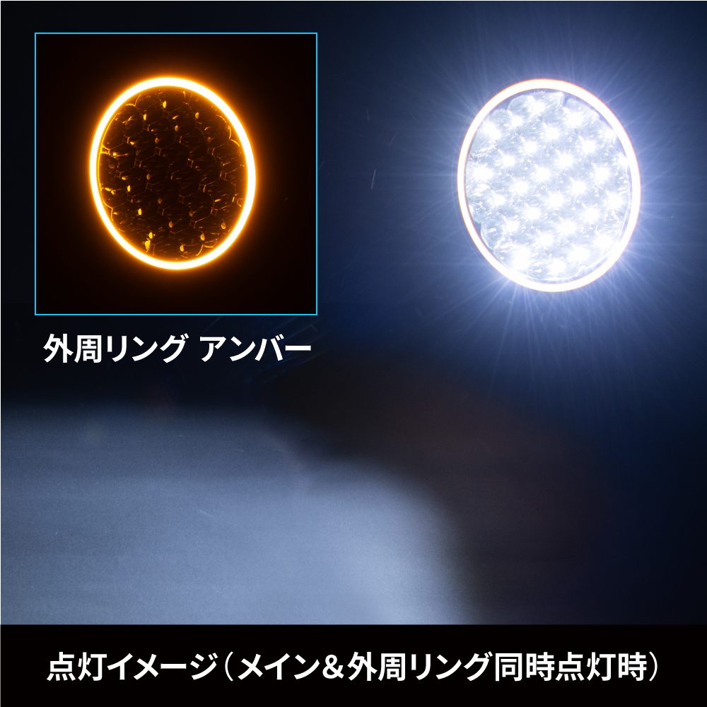 外周リングは、アンバーとホワイトの2色を搭載!! 同時接続した場合ホワイト点灯が優先されるのでアイデア次第で使用方法は多彩!!