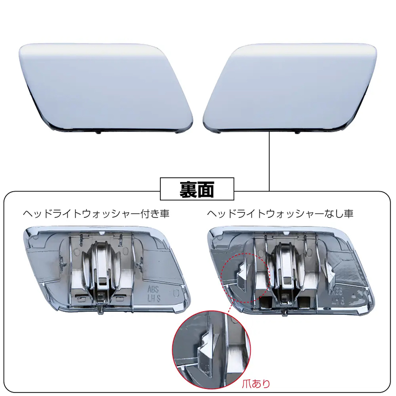 (センター・コーナーRH/LH)と、ウォッシャー用フタ(ウォッシャーあり車用/なし車用)