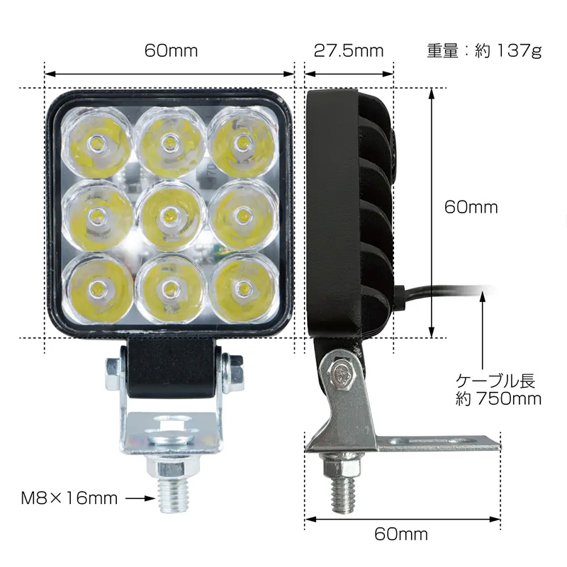 LEDミニワークランプ 角型 15W(12V/24V共用)#526835