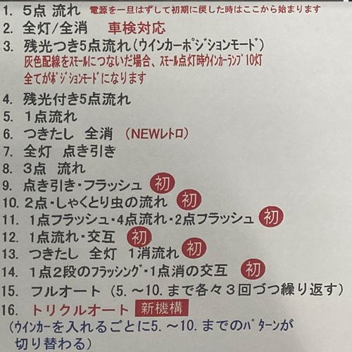 フルオート/トリクルオート(ウインカーを入れるごとにパターン変化)機能付き
