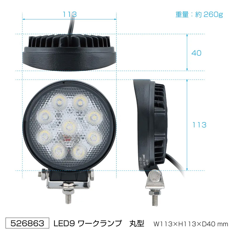 WL-49 LED9 ワークランプ丸型(12V/24V共用)【526863】