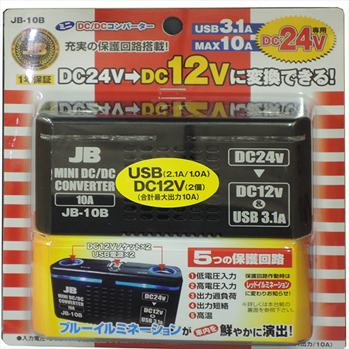●定格出力:DC12V・USB/2.1A/1.0A(合計最大出力10A)