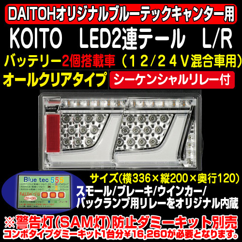 ブルーテックキャンター用KOITO 【シーケンシャルリレー付】LED2連オールクリアテール L/Rセット(バッテリー2個搭載車) 車検対応・Eマーク ※ダミーキット別売※