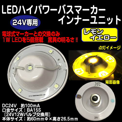DAITOHオリジナル LED5ハイパワーバスマーカー24V(クリア/イエロー)ガラスレンズ