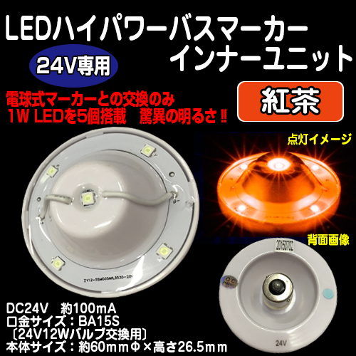 DAITOHオリジナル LED5ハイパワーバスマーカー24V(クリア/紅茶)ガラスレンズ