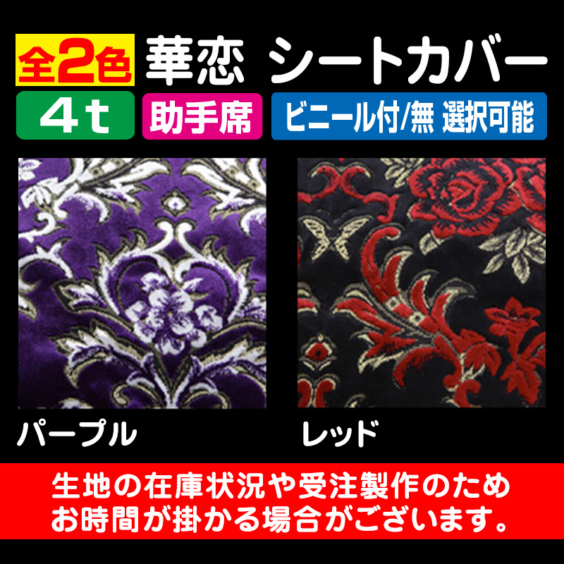 華恋 シートカバー(4t/助手席)[全2色] ビニール付/無 選択可能 (受注製作品/代引き不可)