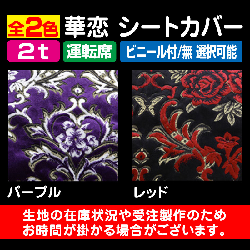 華恋 シートカバー(2t/運転席)[全2色] ビニール付/無 選択可能 (受注製作品/代引き不可)