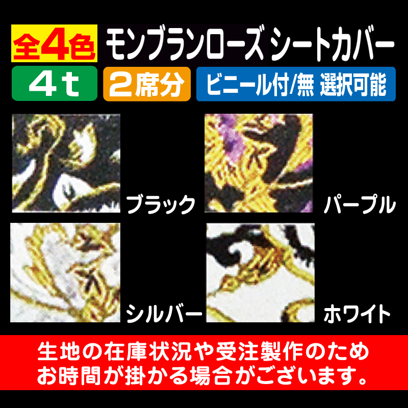 モンブランローズ シートカバー(4t/2席)[全4色] ビニール付/無 選択可能 (受注製作品/代引き不可)