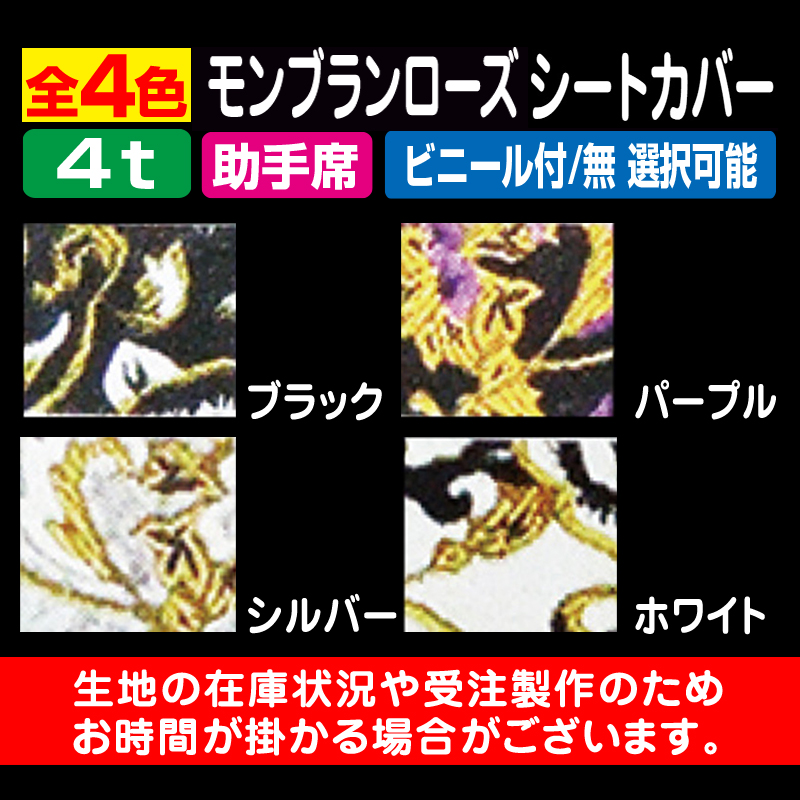 モンブランローズ シートカバー(4t/助手席)[全4色] ビニール付/無 選択可能 (受注製作品/代引き不可)