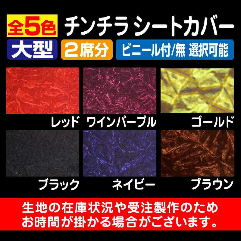 チンチラ シートカバー(大型/2席)[全6色]ビニール付/無 選択可能 (受注製作品/代引き不可)