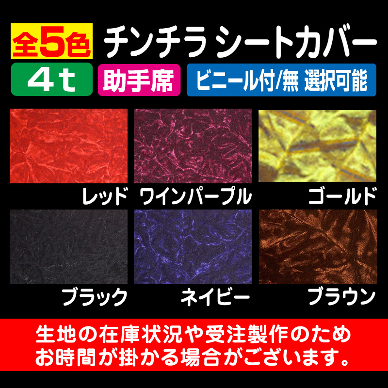 チンチラ シートカバー(4t/助手席)[全6色]ビニール付/無 選択可能 (受注製作品/代引き不可)