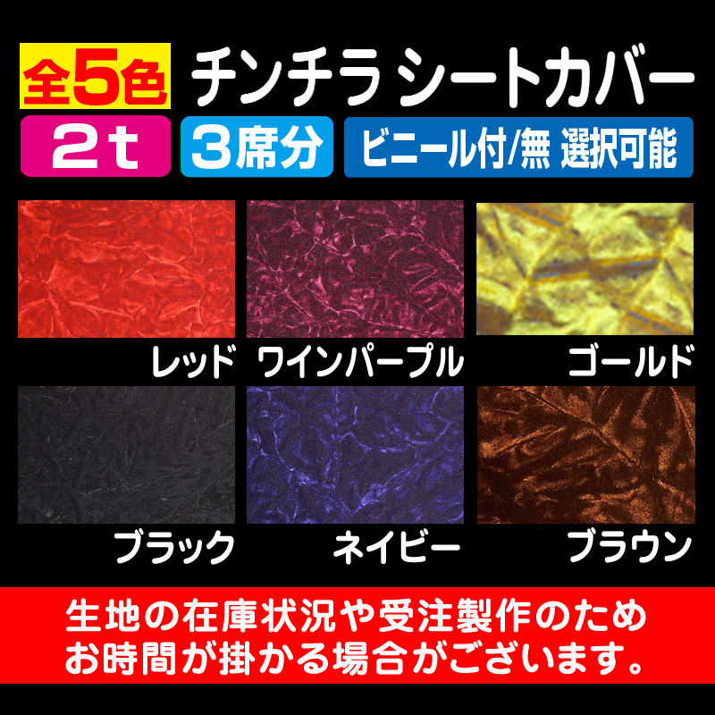 チンチラシートカバー(2t/3席)[全6色]ビニール付/無 選択可能 (受注製作品/代引き不可)