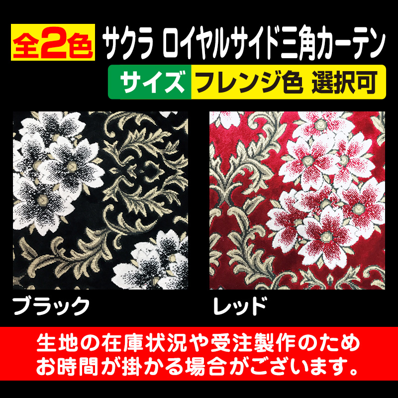 サクラ ロイヤルサイド三角カーテン[全2色] サイズ/フレンジ色 選択可能 (受注製作品/代引き不可)【2枚1台分】