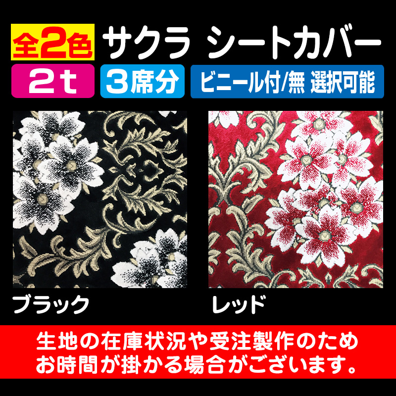 サクラ シートカバー(2t/3席)[全2色] ビニール付/無 選択可能 (受注製作品/代引き不可)