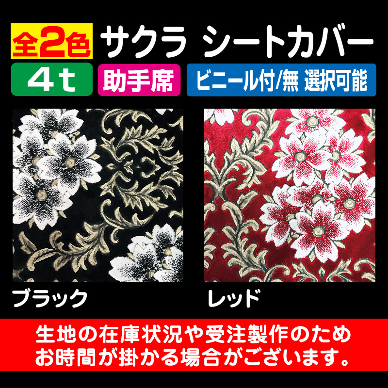 サクラ シートカバー(4t/助手席)[全2色] ビニール付/無 選択可能 (受注製作品/代引き不可)