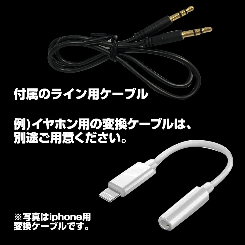 ※Lightningケーブル(iPhone)からイヤフォンジャックへの変換ケーブルは付属されておりません。