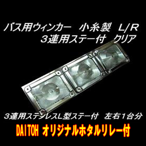 バス用ウインカー 小糸製 3連用ステンレスL型ステー クリアレンズ 国産ホタルリレー付仕様 L/Rセット