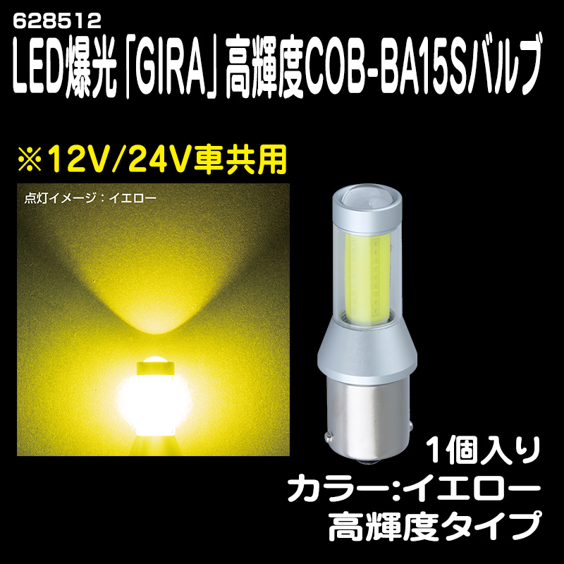 LED爆光「GIRA」高輝度COB-BA15Sバルブ イエロー12V/24V車共用