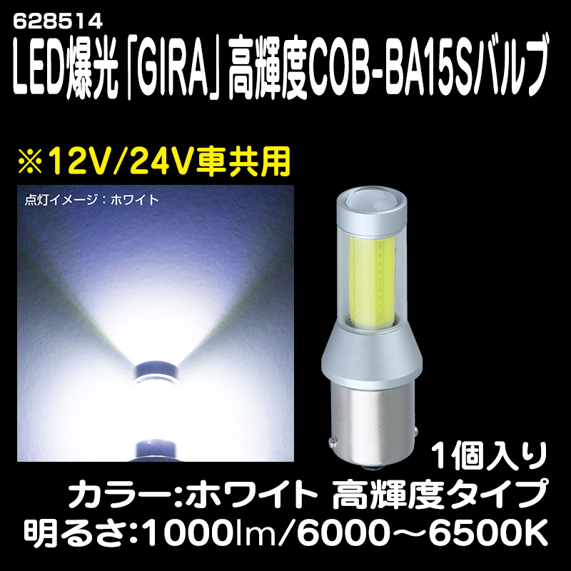 LED爆光「GIRA」高輝度COB-BA15Sバルブ ホワイト12V/24V車共用 628514