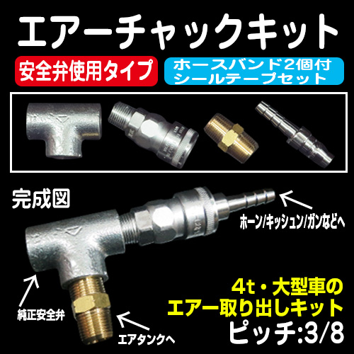 エアーチャックキット 3/8 安全弁使用タイプ ホースバンド2個付・シールテープセット