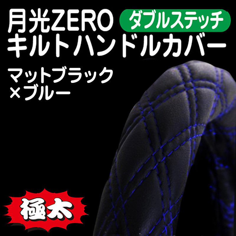 月光ZEROキルトハンドルカバー マットブラック×ブルー(ダブルステッチ)