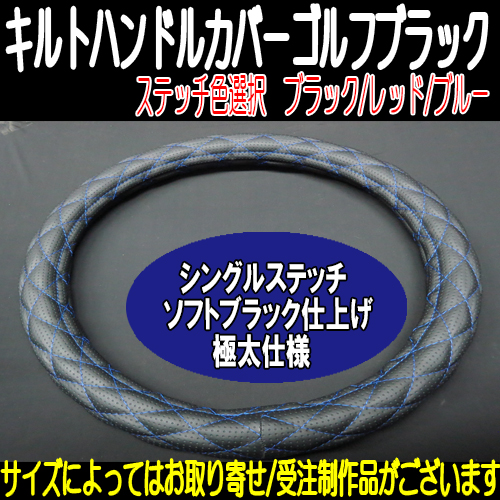 ハンドルカバーゴルフブラック シングルステッチ色(ブルー)