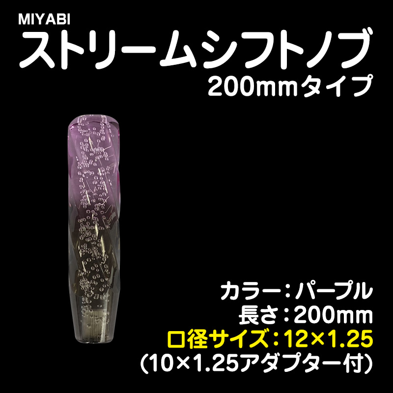 半紙シフトノブ パープル 200mm 12×1.25 (※別売アダプタで10×1.75/10×1.25/8×1.25)
