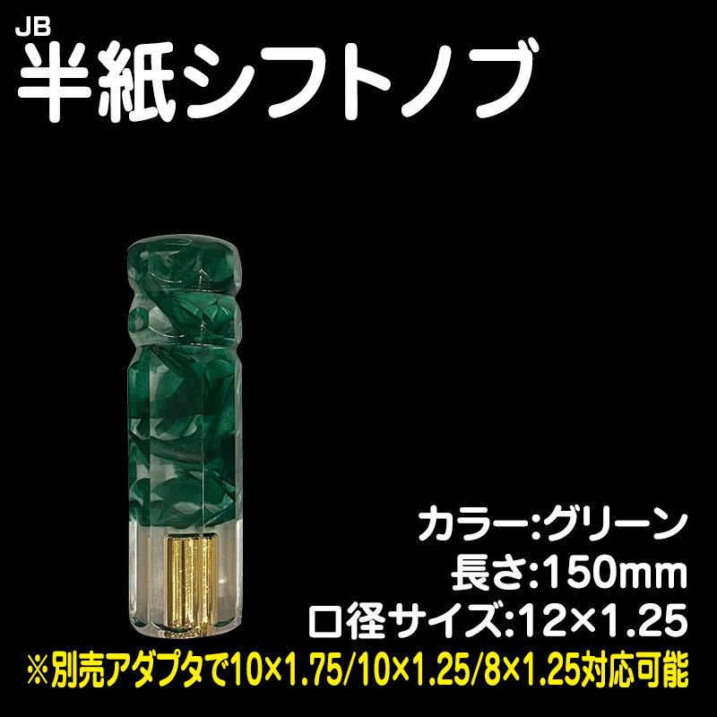 半紙シフトノブ グリーン 150mm 12×1.25 (※別売アダプタで10×1.75/10×1.25/8×1.25)