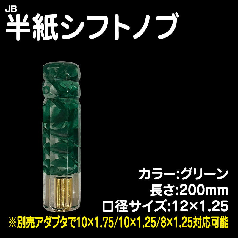 半紙シフトノブ グリーン 200mm 12×1.25 (※別売アダプタで10×1.75/10×1.25/8×1.25)