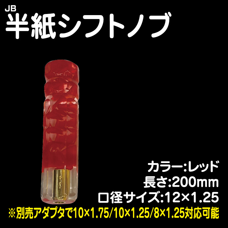 半紙シフトノブ レッド 200mm 12×1.25 (※別売アダプタで10×1.75/10×1.25/8×1.25)