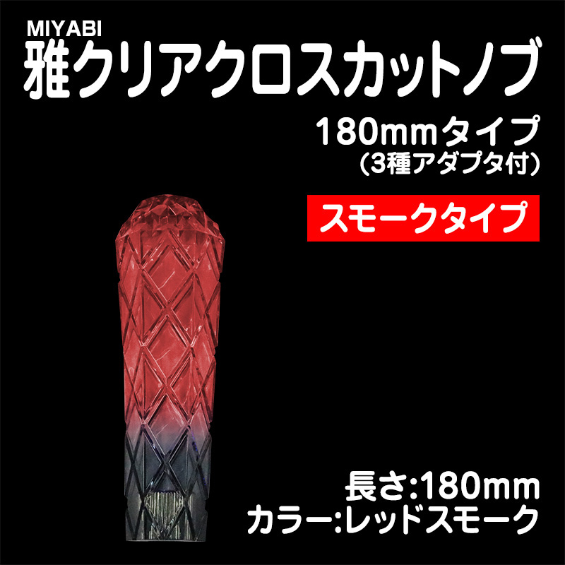 雅クリアクロスカットシフトノブ レッドスモーク 180mm 3種アダプター付(10×1.25/12×1.25/12×1.75)