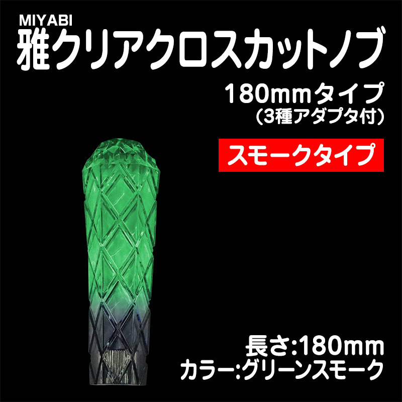 雅クリアクロスカットシフトノブ グリーンスモーク 180mm 3種アダプター付(10×1.25/12×1.25/12×1.75)