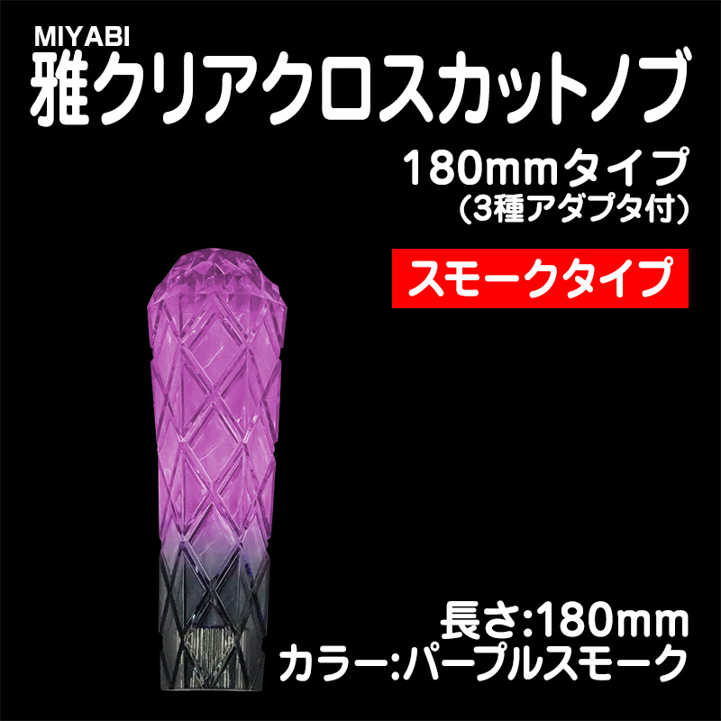 雅クリアクロスカットシフトノブ パープルスモーク 180mm 3種アダプター付(10×1.25/12×1.25/12×1.75)