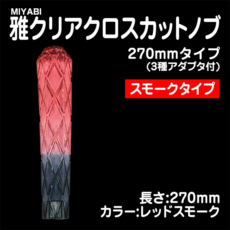 雅クリアクロスカットシフトノブ レッドスモーク 270mm 3種アダプター付(10×1.25/12×1.25/12×1.75)