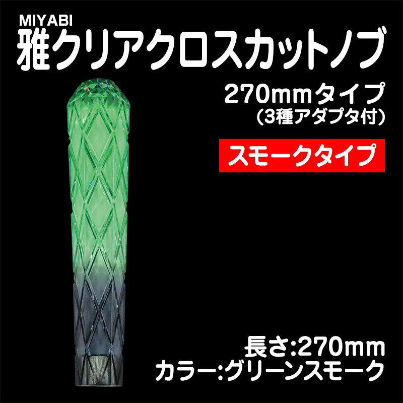雅クリアクロスカットシフトノブ グリーンスモーク 270mm 3種アダプター付(10×1.25/12×1.25/12×1.75)