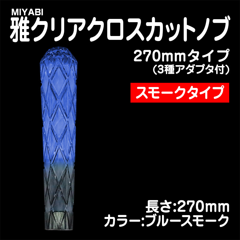 雅クリアクロスカットシフトノブ ブルースモーク 270mm 3種アダプター付(10×1.25/12×1.25/12×1.75)