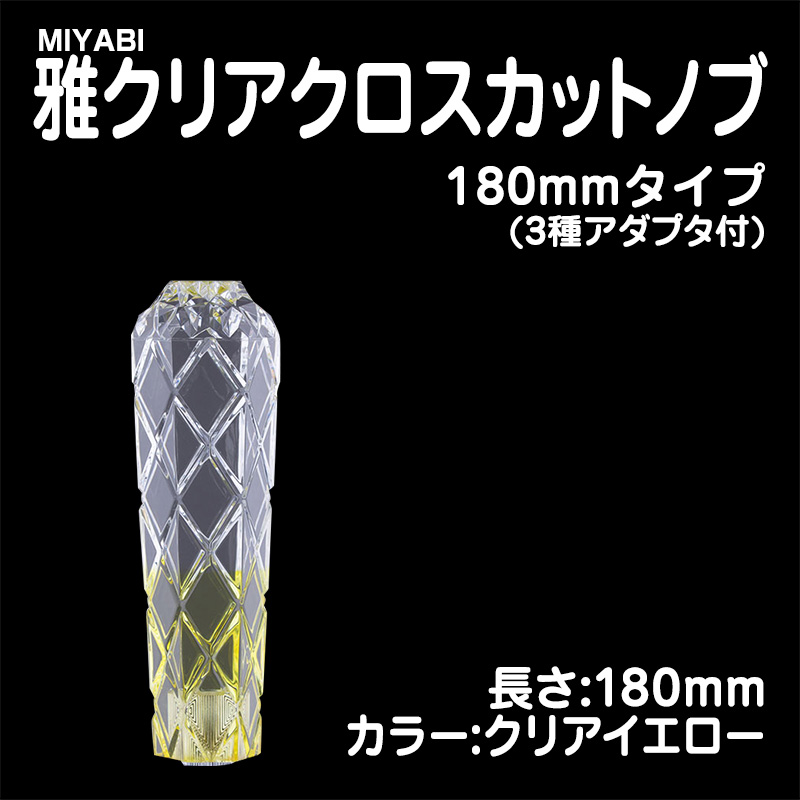 雅クリアクロスカットシフトノブ クリアイエロー 180mm 3種アダプター付(10×1.25/12×1.25/12×1.75)