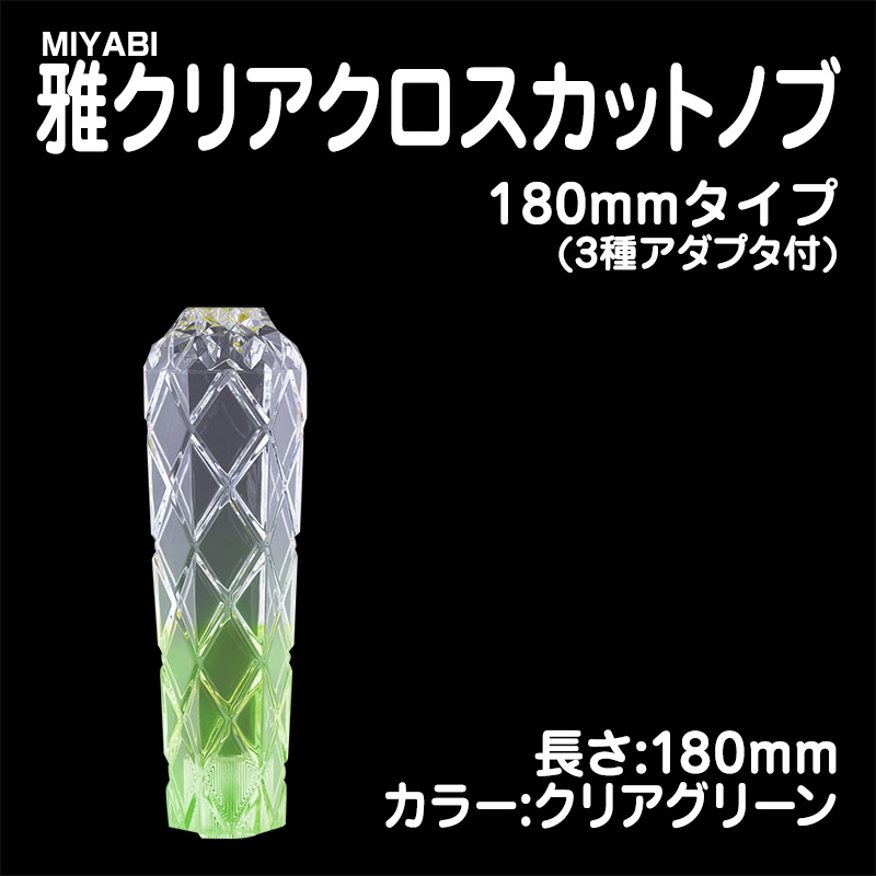 雅クリアクロスカットシフトノブ クリアグリーン 180mm 3種アダプター付(10×1.25/12×1.25/12×1.75)