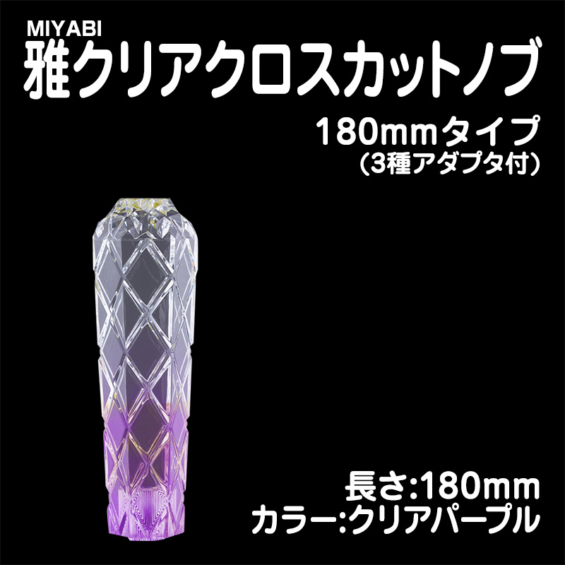 雅クリアクロスカットシフトノブ クリアパープル 180mm 3種アダプター付(10×1.25/12×1.25/12×1.75)