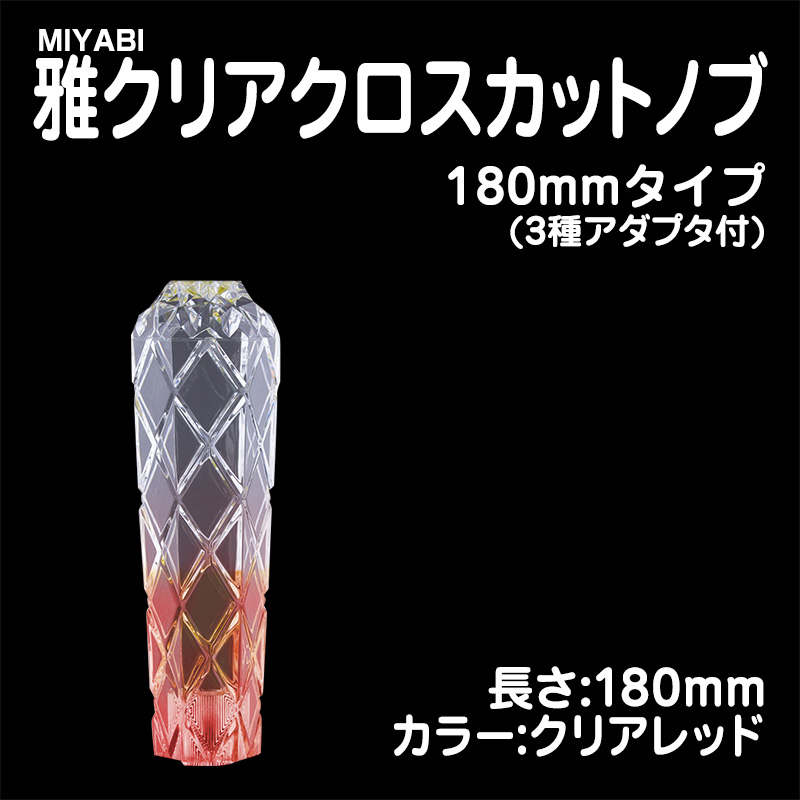 雅クリアクロスカットシフトノブ クリアレッド 180mm 3種アダプター付(10×1.25/12×1.25/12×1.75)