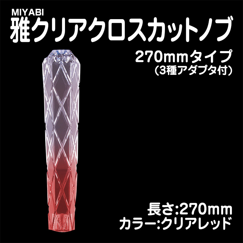 雅クリアクロスカットシフトノブ クリアレッド 270mm 3種アダプター付(10×1.25/12×1.25/12×1.75)