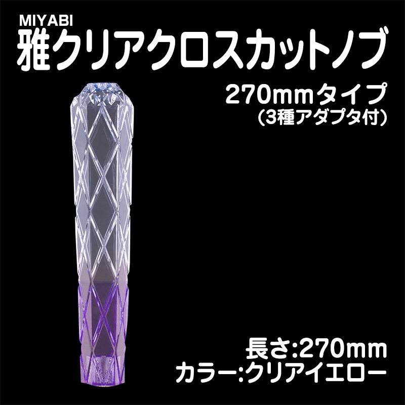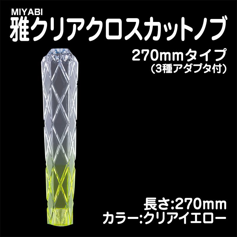 雅クリアクロスカットシフトノブ クリアイエロー 270mm 3種アダプター付(10×1.25/12×1.25/12×1.75)