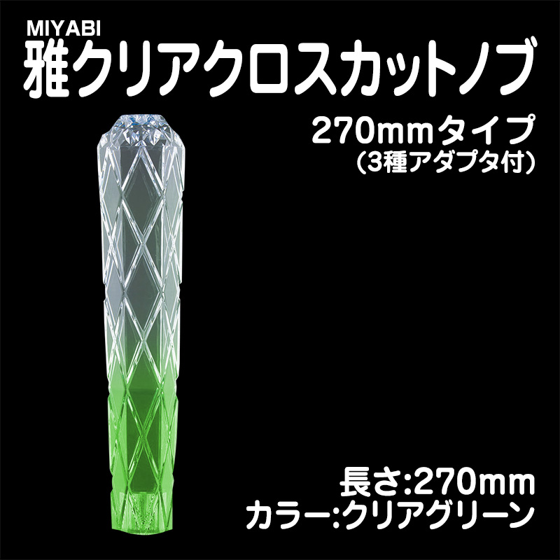 雅クリアクロスカットシフトノブ クリアグリーン 270mm 3種アダプター付(10×1.25/12×1.25/12×1.75)