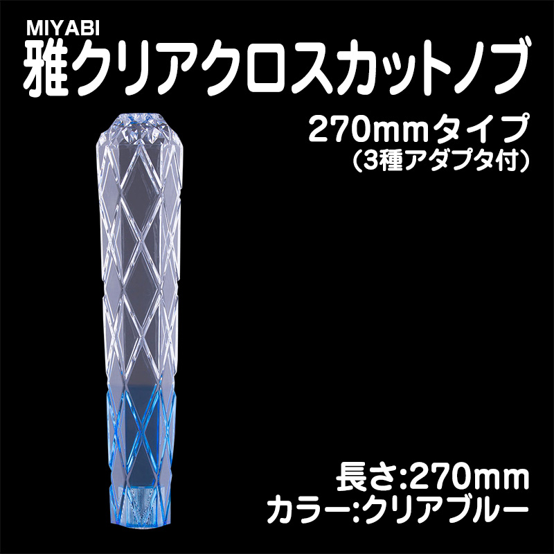 雅クリアクロスカットシフトノブ クリアブルー 270mm 3種アダプター付(10×1.25/12×1.25/12×1.75)