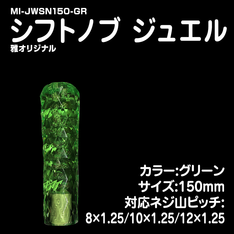 雅オリジナルシフトノブ ジュエル グリーン 150mm (10×1.25/12×1.25/12×1.75) MI-JWSN150-GR